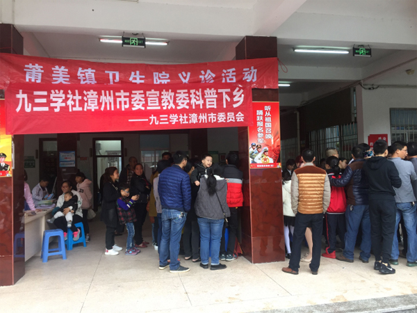 11月25日,九三学社漳州市委宣教委组织科教医疗专家到云霄县莆美镇开展义诊咨询和科普下乡活动,云霄县教育和卫生部门共同参与活动。活动分两路进行。